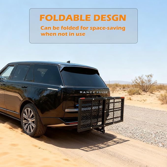 lugglage Basket 60x24x13 inches, Folds Flat, 600 Lbs Heavy Duty Hitch Cargo Basket with Waterproof Bag, Black,Luggage Storage (60X24X13 inch with Bag)