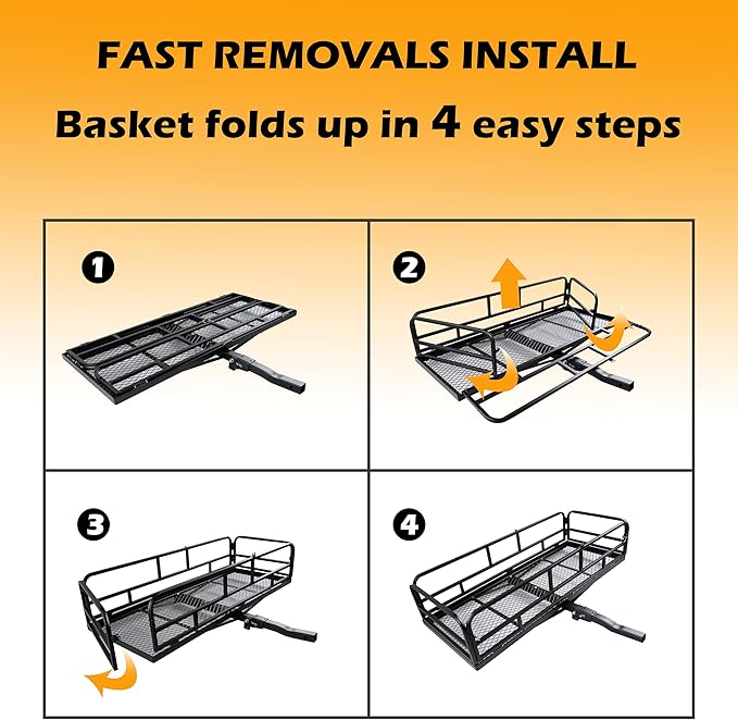- 【Good quality and durable】Made of heavy-duty steel with a durable powder coat finish,protects it from rust, corrosion, and weather elements. This luggage basket is built to withstand loads up to 500 pounds for reliable transport.