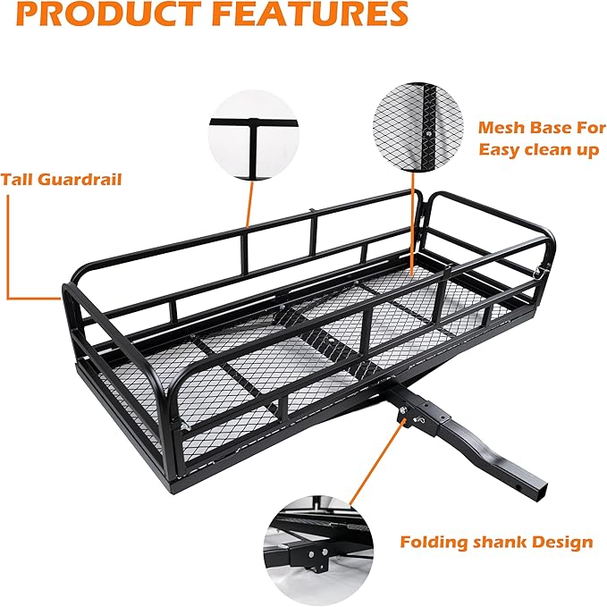 lugglage Basket 60x24x13 inches, Folds Flat, 600 Lbs Heavy Duty Hitch Cargo Basket Black,Luggage Storage (60x24x13 inch)