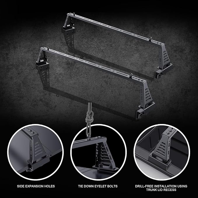- Hassle-free Installation Process:Features a direct no-drill bolt-on installation, suitable for truck beds with or without utility rails. Easy to mount and compatible with bed racks for trucks that use tonneau covers, saving valuable installation time.