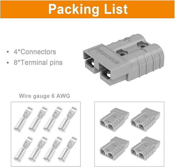 - 【MATERIAL】Connectors use silver-plated terminals to match 6 AWG wire gauges, which have excellent electrical and thermal conductivity.