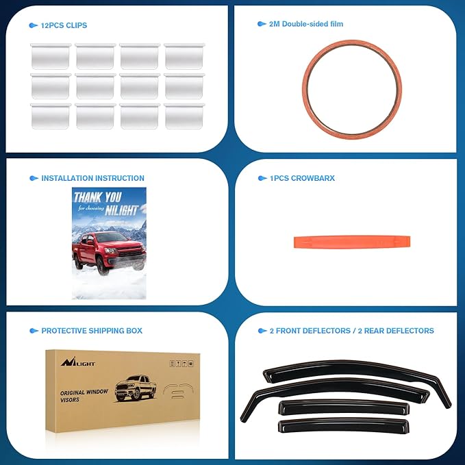 - Advantage:Nilight window deflectors are great for all weather conditions,help improve ventilation inside and outside your car to reduce mirror and window fogging while increasing air circulation.With our side window deflectors,it deflect the rain and noise away from your windows to make your driving more enjoyable