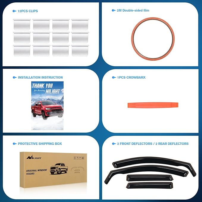 - Advantage:Nilight window deflectors are great for all weather conditions,help improve ventilation inside and outside your car to reduce mirror and window fogging while increasing air circulation.With our side window deflectors,it deflect the rain and noise away from your windows to make your driving more enjoyable