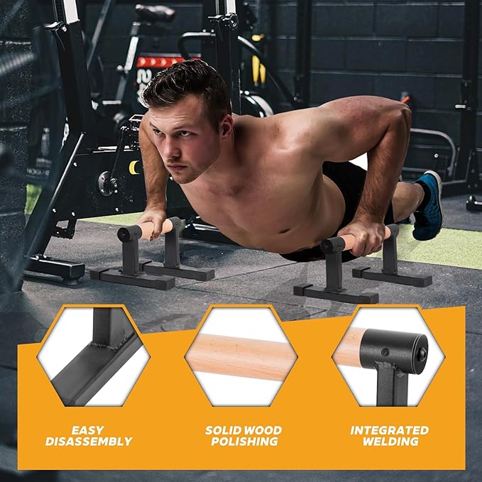 - 【Multi-function】: Trlakepreble Wooden Parallel Bar is suitable for various exercises, such as parallel grip push-ups, straight bar push-ups, reverse grip push-ups, wide grip push-ups, archer push-ups, handstands, L-sits, straddle elbow bars and quicks.