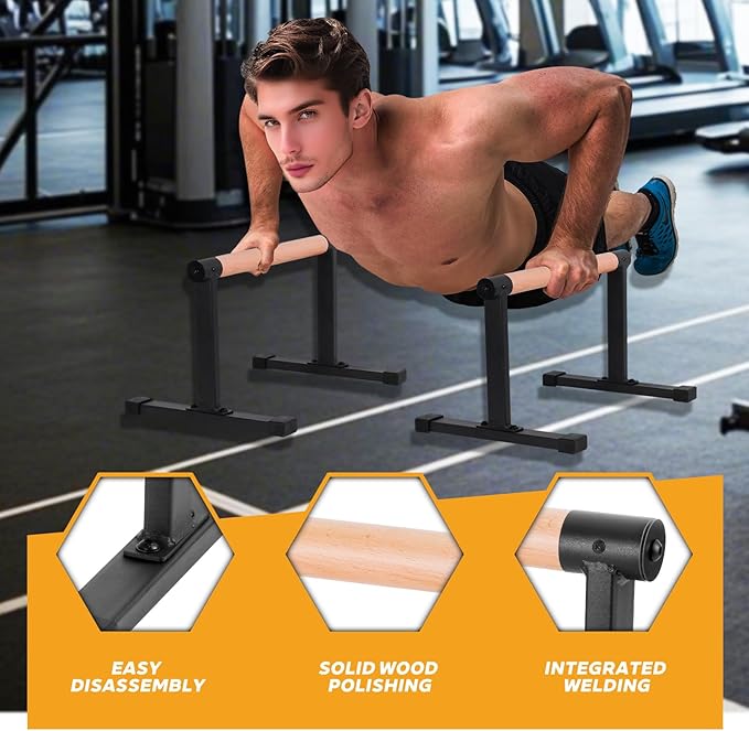 - 【Multi-function】: Trlakepreble Wooden Parallel Bar is suitable for various exercises, such as parallel grip push-ups, straight bar push-ups, reverse grip push-ups, wide grip push-ups, archer push-ups, handstands, L-sits, straddle elbow bars and quicks.
