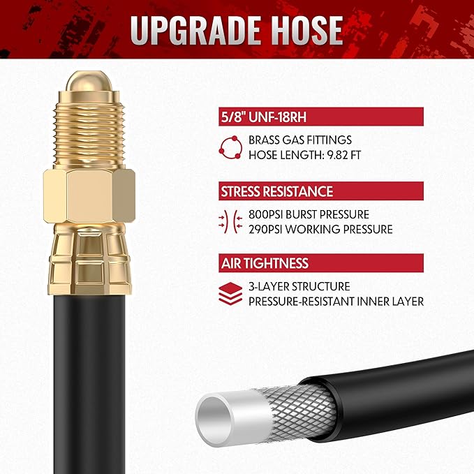- The package includes an argon regulator and mounting nut. It is designed to connect gas hoses with various interfaces, and comes with a 9.8 ft hose