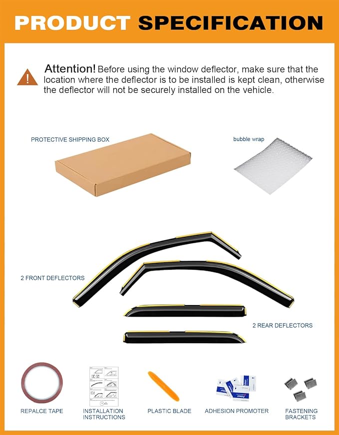- 【Full-size Side Window Deflectors】This 4-piece set includes passenger, driver that create a seamless look that protects you from sun rays, rain drops, and wind while you’re driving with the window down.