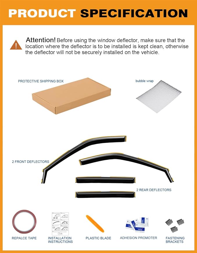 - 【Full-size Side Window Deflectors】This 4-piece set includes passenger, driver that create a seamless look that protects you from sun rays, rain drops, and wind while you’re driving with the window down.