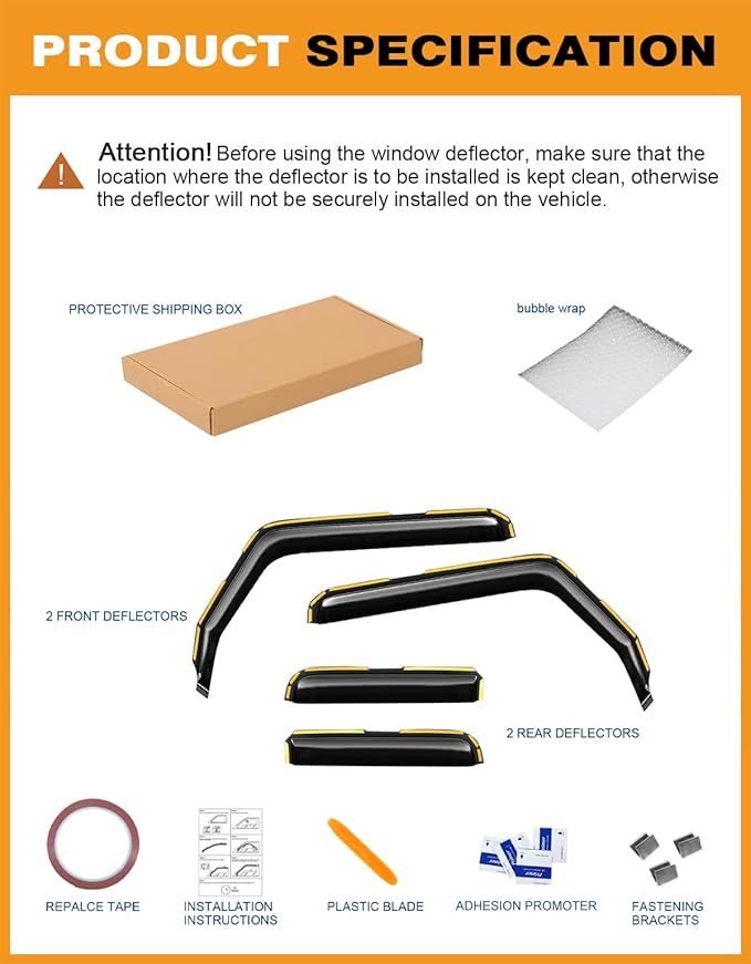 - 【Full-size Side Window Deflectors】This 4-piece set includes passenger, driver that create a seamless look that protects you from sun rays, rain drops, and wind while you’re driving with the window down.