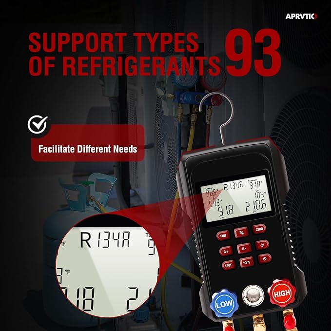 - Intelligent Digital Display: LCD backlight support; pressure multi- unit conversion; temperature Celsius / Fahrenheit Conversion, etc.The manometros a/c is ideal for professional AC engineers and auto mechanics