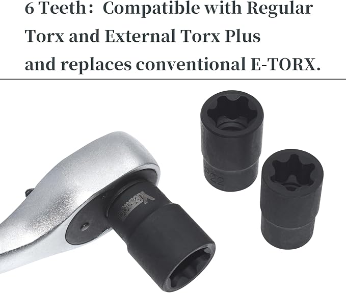- External Torx Plus Socket: Many vehicles now use a new-fangled fastener, but the standard Torx socket cannot remove or install this new fastener. Only this new external torx plus socket can fit it.