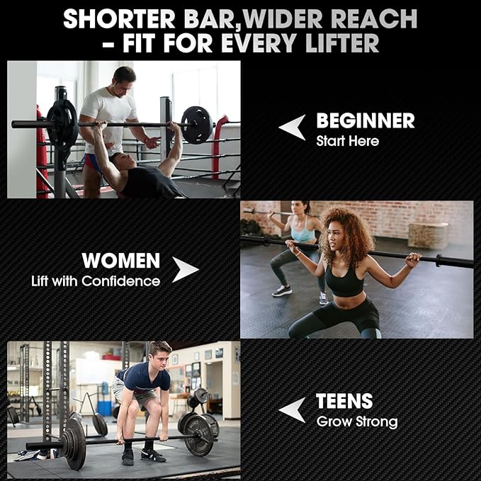 - 【Multi-sport Applications】Our Olympic barbells are also highly versatile and can be used in a variety of sports beyond traditional weightlifting. With a small accessory like a resistance band, you can incorporate resistance squats and bench presses into your workout, or try an effective full-body workout with an increased weight T-bar row.