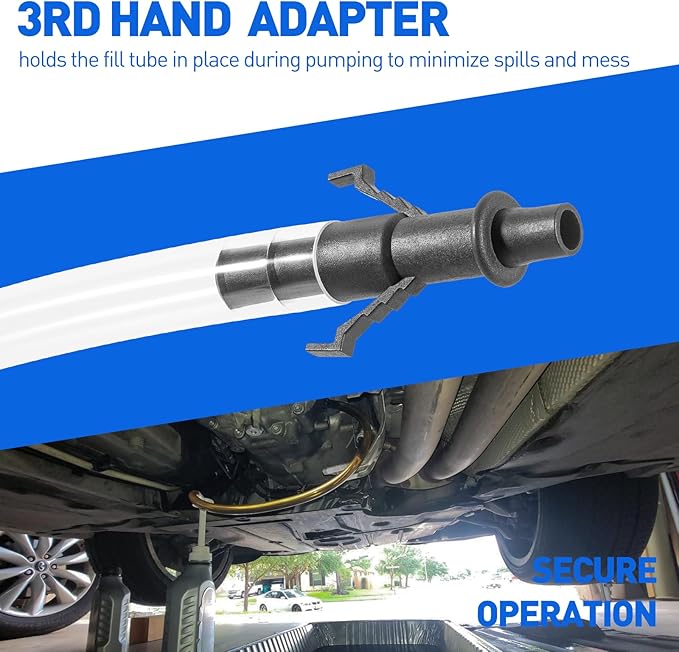- Secure Operation: Includes a 3rd hand adapter that holds the fill tube in place during pumping to minimize spills and mess.