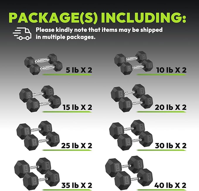 Hex Dumbbell 45-480 lb Set, Rubber Encased Exercise & Fitness Dumbbells for Home Gym, Hand Weights for Strength Training