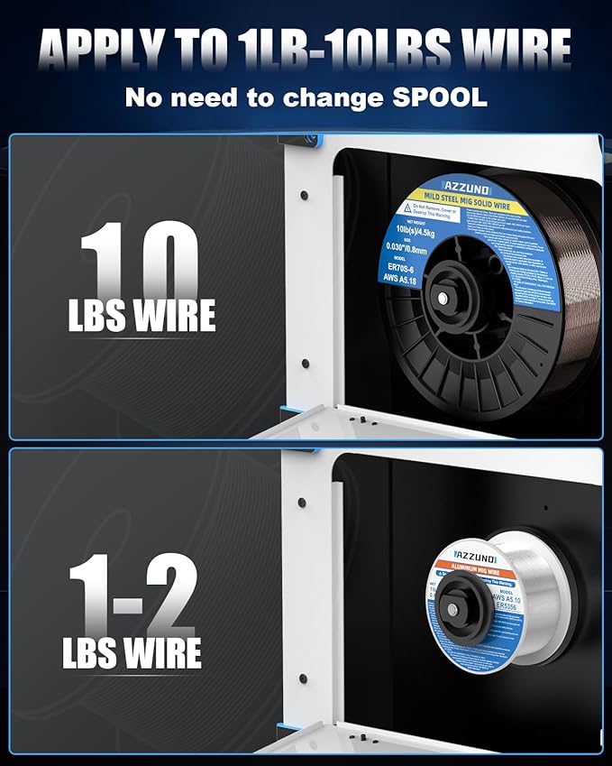 - 【MULTIPROCESS 8-IN-1 WELDING MACHINE】: This dual-voltage (110V/220V) MIG welder integrates 8 welding functions, including Gas MIG, MAG, Flux Core MIG, Aluminum MIG, Spool Gun MIG, Spot MIG, Lift TIG, Stick Welding (TIG torch and spool gun not included). It accommodates .023"/.030"/.035"/.040" solid and flux core wire, as well as .035"/.040" aluminum wire, ensuring compatibility with various welding applications.