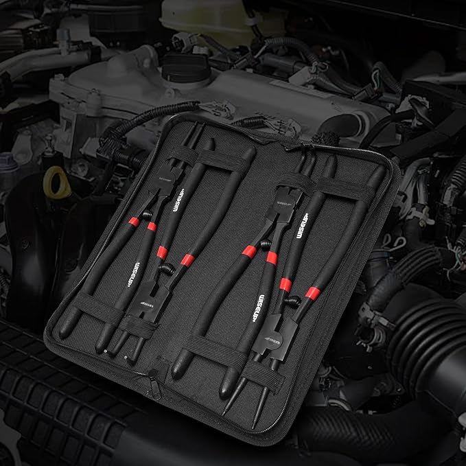 - 【Premium Material】 WISEUP Snap Ring Pliers Heavy Duty are Made Of Industrial Grade #55 Carbon Steel Which have High Hardness and Strength after Forged and Heat-Treated.Coming With Oxide Protective Film Which Make C-Clip Pliers are Sturdy,Durable,Anti-Corrosion And Long Service Life