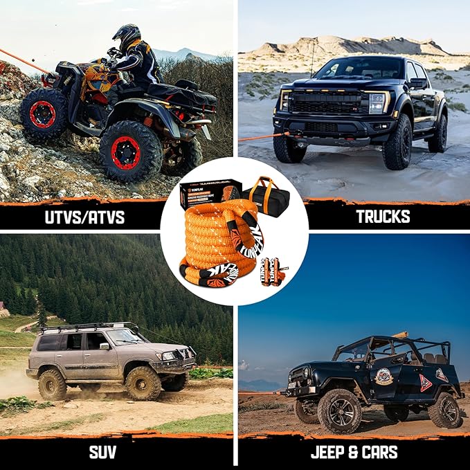 - QUALITY FIRST: No Compromises on Critical Recovery - We prioritize premium materials and meticulous craftsmanship over cost cutting. Crafted with double-braided Nylon66 and military-grade polymer coating, this kinetic rope delivers consistent, reliable performance for off-road emergencies