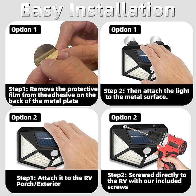 - EASY TO INSTALL: RV lights exterior can be easily fixed to the RV with the included strong magnets. For RVs with non-metallic shells, we provide metal plates with adhesive backing. Just use two metal plates and two strong magnets for a secure attachment, no drilling required, easy and quick installation. If users are looking for a more stable installation effect, we also provide additional screws for optional use.