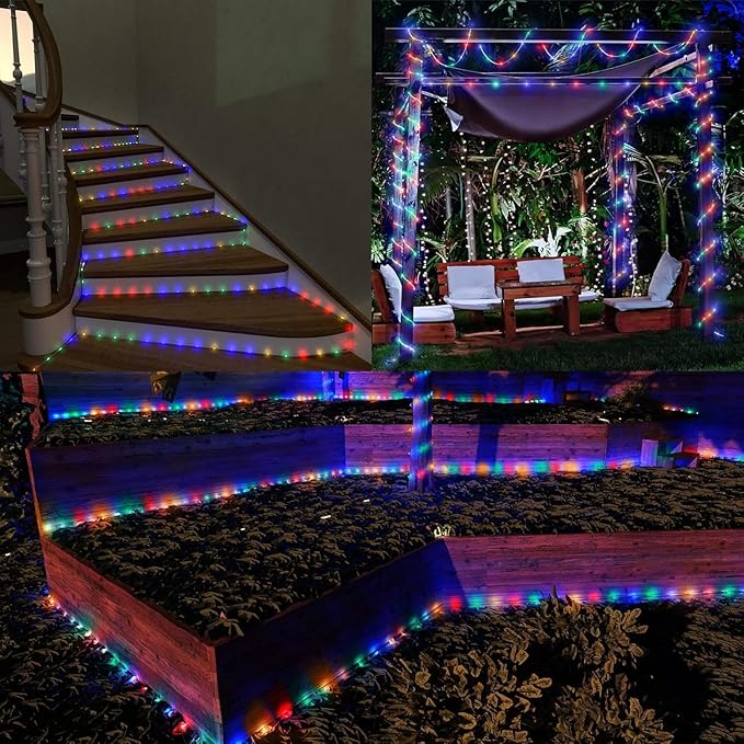 - With Clearly PVC Tube Cover: Our solar rope lights waterproof is completely covered by a transparent PVC tube which is durable and flexible, much safer compared with ordinary rope solar lights outdoor waterproof and most importantly with a longer working life as well. the tube fairy lights solar is easily to be twisted into any shape you want, or wind the tree, fence and porch, decorate your garden add romantic and dreamy ambiance.