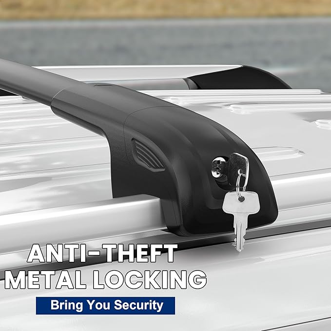 - 【Security and anti-thef】FLYCLE Roof Rack Crossbar is made of high-quality aluminum alloy, which is lightweight and durable. upgraded with metal anti-theft lock system, offer 100% anti-theft protection for your travel transportation.