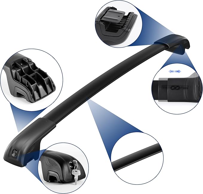 - 【Easy to install】Installation is simple and fast,no drilling required during Use Corresponding installation tools and install the crossbar and the parts on the roof rails according to the installation instructions. The entire installation process only need 10-15 minutes.