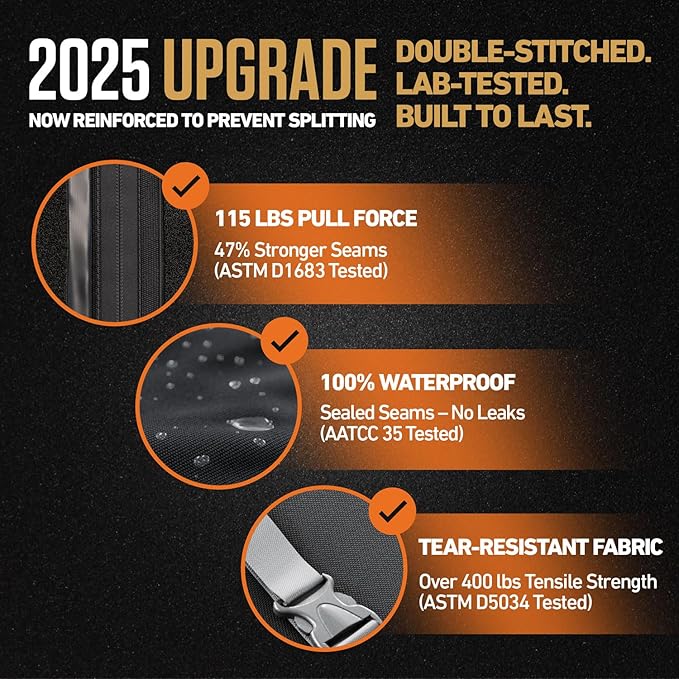 - LIFETIME GUARANTEE & QUALITY YOU CAN TRUST: Built to last from premium waterproof materials, this roof cargo bag for SUV, truck, or car is backed by our lifetime replacement guarantee. If anything ever goes wrong, we’ll replace it—no questions asked. Travel with confidence and peace of mind.