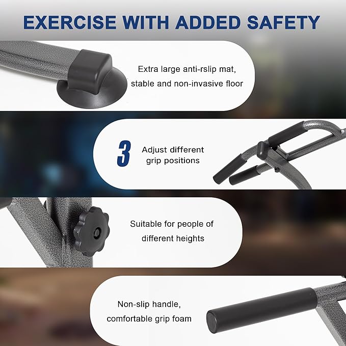 - 【3 Adjustable Grip Positions】This pull up dip station supports 3 different grip styles to help target specific muscle groups. By switching between these professional-grade grips, you can effectively work your back, arms, or shoulders while easily adjusting the difficulty level of your workout.The ergonomically designed grips provide comfortable and secure handling during intense exercise sessions.