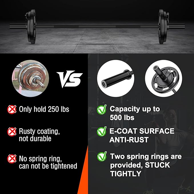 57" Olympic Barbell Bar, 2" Standard Straight Barbell Bars for Weight Lifting Bar for Bench Press/Squats/Hip Thrusts/Lunges/Biceps- Home Gym Weight Bar- 2 Spring Collars(500lb Weight Capacity)