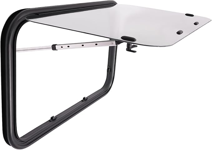 - đăATTRACTIVE APPEARANCEă The smooth surface, rectangular shape, and classic black color give this RV window a clean, modern look that complements your vehicle.