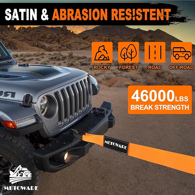 - Durable Construction: Made from high-quality polyester, Metoware recovery strap features a reinforced weave to prevent fraying, providing you with a long-lasting and reliable towing solution.