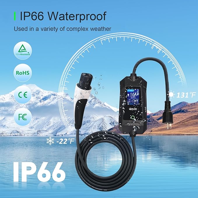 - Comprehensive Safety Protection: Certified by CE, FCC, and ROHS with UL-listed cable, this charger features multiple protections including leakage, under-voltage, over-current, short-circuit, over-voltage, over-temperature, and surge protection. With IP66 dustproof and waterproof rating, it operates reliably in temperatures from -22°F to 131°F (-30°C to 55°C), suitable for various environments