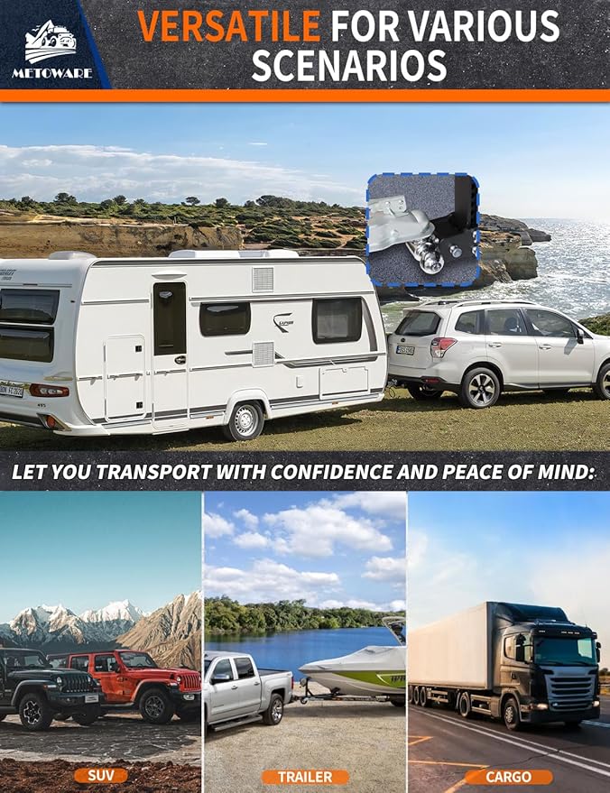 - DUAL ANTI-THEFT: The anti-theft lock is made of metal material, which is difficult to pry open or cut with ordinary tools. Corrosion-resistant pins and snap pins hold our trailer hitch in place, slowing down swaying and falling during towing, triple protection. The adjustable arm and ball assembly adopt an integrated anti disassembly design, so even if the lock is broken, the adjustable trailer hitches cannot be easily separated. Greatly reducing the risk of theft. Protect your vehicle at all times.