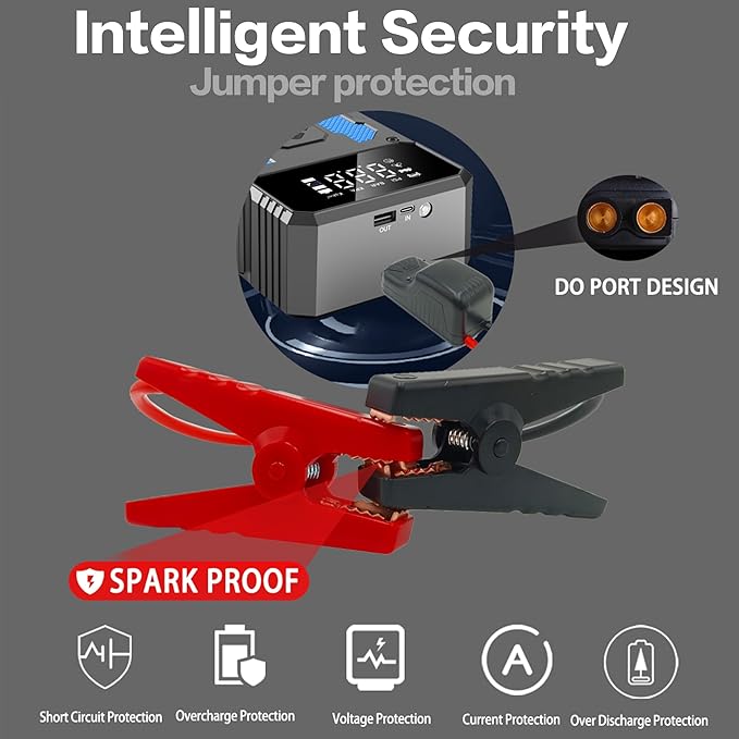 - -----【WIDE COMPATIBILITY】Supports 12V/24V lead-acid batteries (regular, AGM, EFB) and lithium batteries, making it compatible with 99% of passenger vehicle models, a must-have emergency tool for your car.