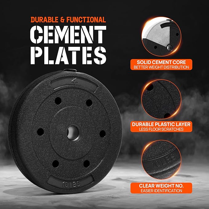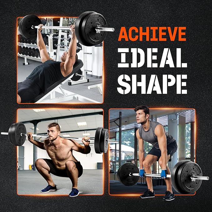 - DETACHABLE BARBELL FOR EASY STORAGE: Designed for quick assembly, the bar with weights set is easy to store; Ideal for home gyms, the space-saving detachable straight barbell allows for convenient use, ensures portability, ideal for small spaces