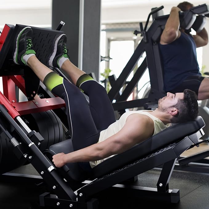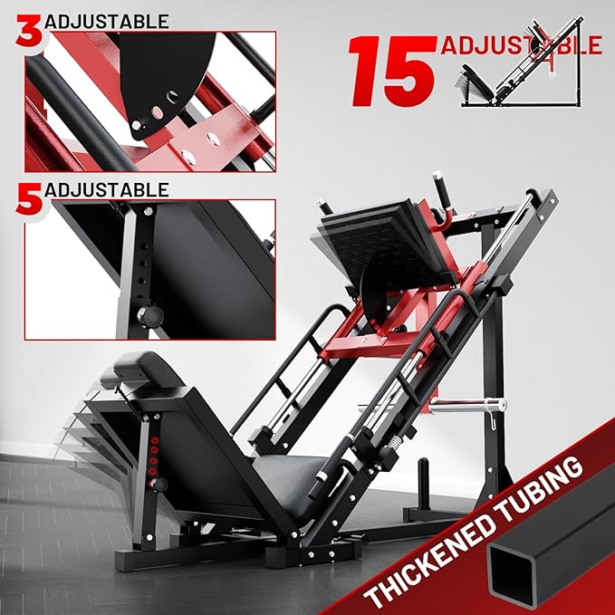 - 【Comfort & Smooth Exercise Experience】This leg press and hack squat gym machine includes thick shoulder and backrest cushions wrapped in premium, anti-slip, and wear-resistant leather, providing ultimate comfort to reduce strain and protect your joints and bones. The solid metal guide rods and aluminum alloy grips on both sides enhance your workout experience by eliminating jerk motions.