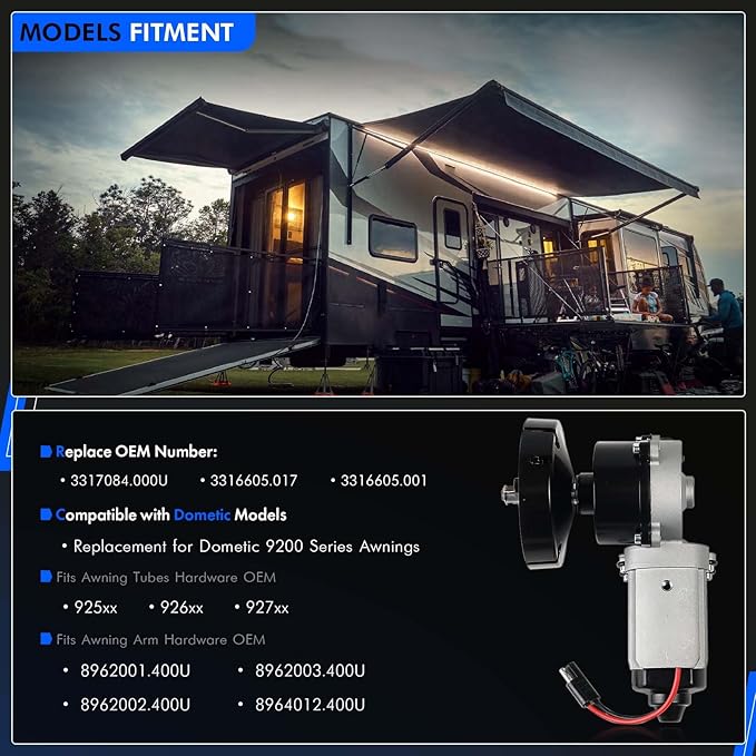 - Applicable Models: Compatible with Dometic 9200 series power awnings. Fit for Dometic Awning Tubes 925xx, 926xx, 927xx. Fit for Dometic Awning Arm Hardware Kit 8962001.400U, 8962002.400U, 8962003.400U, 8964012.400U