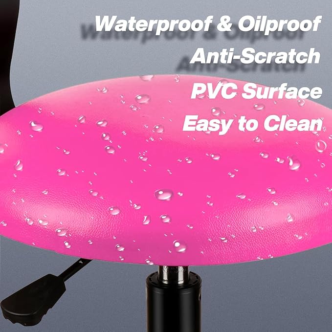 - 【Larger Seat Cushion】14.96"/38CM Diameter Seat. 2.76"/7CM height cushion. The thickened memory foam padded cushion seat is larger than other garage bar work stools with a diameter of only 35cm. The cushion surface of the pink stool is made of PVC material which is waterproof and oilproof, making it easy to be cleaned