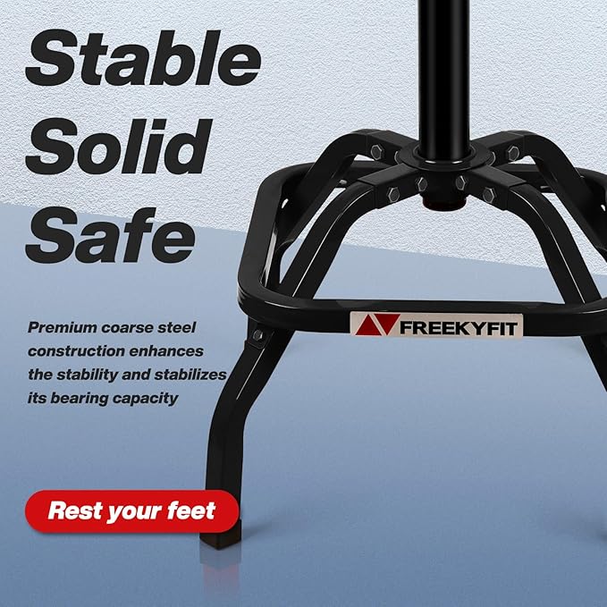 - 【360°& 300LBS】The flexible 360° rotating seat provides greater range of motion and movement. The heavy duty work bench shop stool is specially designed with a thick angle steel frame for long-lasting performance and reliability and footrest. Its design can withstand heavy use, with an overall weight capacity of around 300 pounds. It is a sturdy and practical choice for use in garages, workshops, working bar, and other places