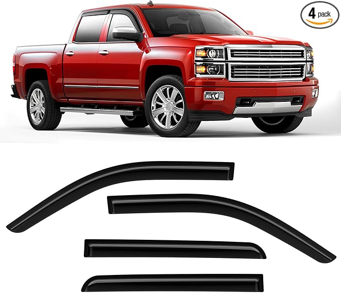 - 【Perfect Fit】ISINLASSO Window Rain Guards for 2014-2018 14 15 16 17 18 Chevy Silverado 1500/GMC Sierra 1500 Crew Cab, Side Window Wind Deflectors 4 PCS.