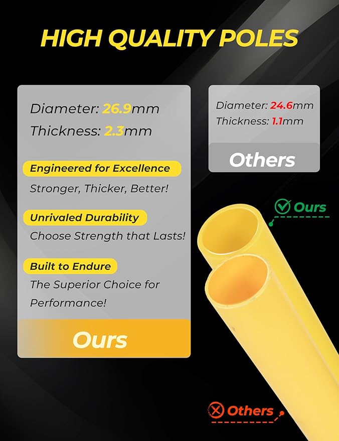 - Premium Construction for Maximum Durability: Made with thicker diameter poles and high-quality, burr-free plastic, this set is built to last. Whether you're training for soccer, basketball, or even equestrian agility, the durable construction ensures long-lasting performance, making it ideal for both professional and recreational athletes.