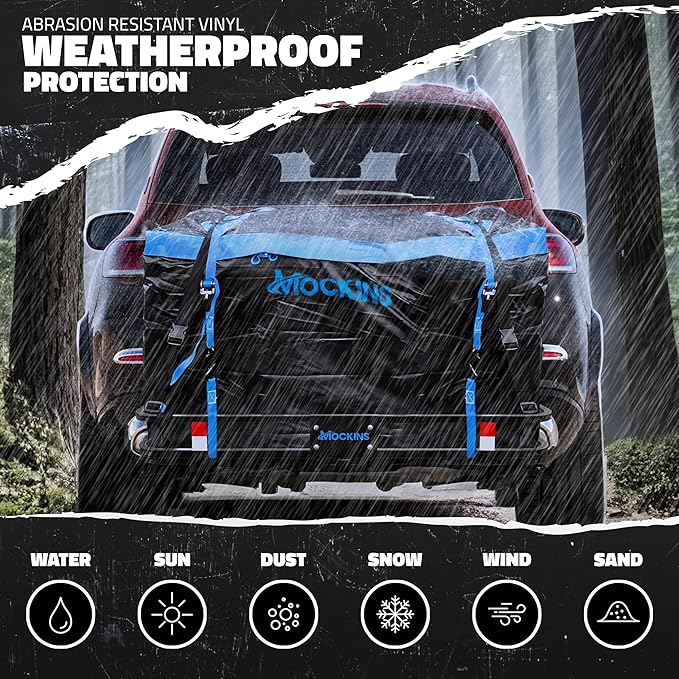 - WATERPROOF CARGO BAG FOR HITCH CARRIER : The Mockins Hitch Mount Cargo Carrier Bag (48"x18"x30"), provides 15 cubic ft of trailer hitch storage . Made from abrasion-resistant vinyl, this trailer hitch rack bag withstands all weather. With waterproof zippers, a 2" flap with Velcro strips, welded seams & a lock, our cargo carrier bag protects your gear. Ideal for truck beds & vehicles with cargo racks for trailer hitch , the car hitch cargo carrier bag holds backpacks, tents, coolers & more!