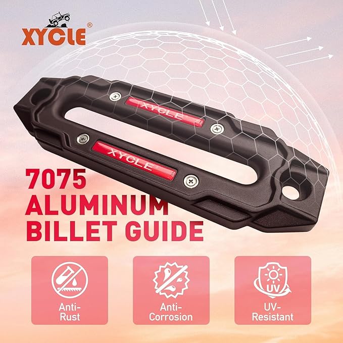 - 【7075 ALUMINUM BILLET】1.our Electric winch fairleads made of superior 7075 aluminum billet. & grade 80 forged steel tow hook. 2.Notably, the high-grade aluminum construction makes them incredibly strong yet lightweight, enhancing durability under extreme tension. 3.corrosion-resistant, essential for harsh environments. Fairleads crafted with smooth rounded edges help prevent fraying of synthetic ropes, extending their lifespan and providing a safer, smoother pulling experience.