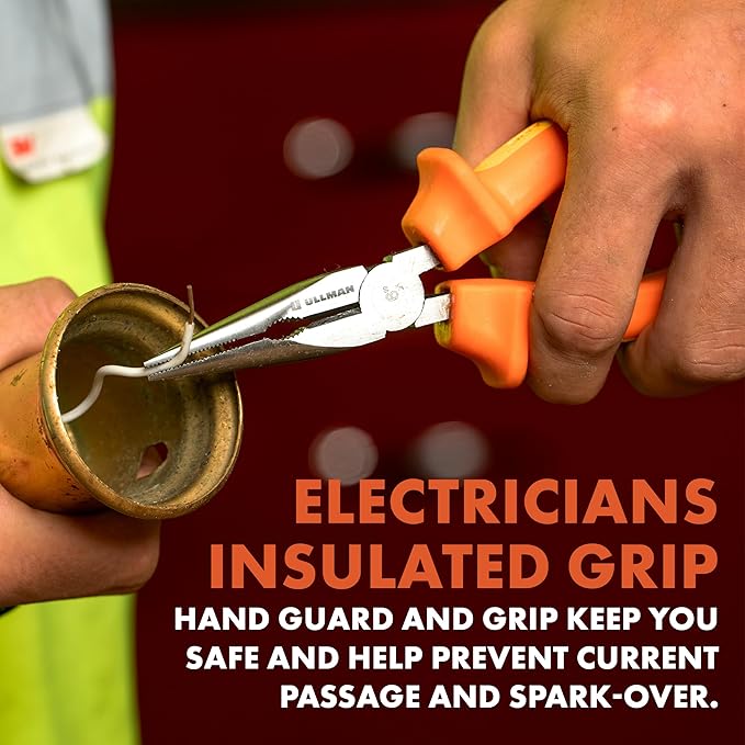 - Ullman Insulated 6 in Long Nose Pliers with Industrial Non-Slip Grip - Perfect Hand Tool for Electricians, HVAC, and Contractors