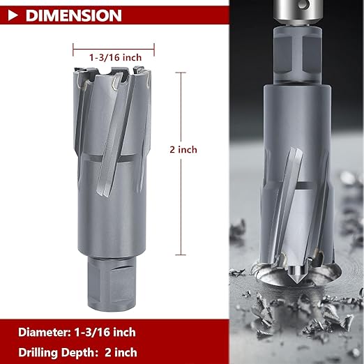 1-3/16" x 2" Annular Cutter with Weldon Shank,Carbide Tip Annular Drill Bit for Stainless Steel, Iron (2" Depth, 1-3/16" Diameter)