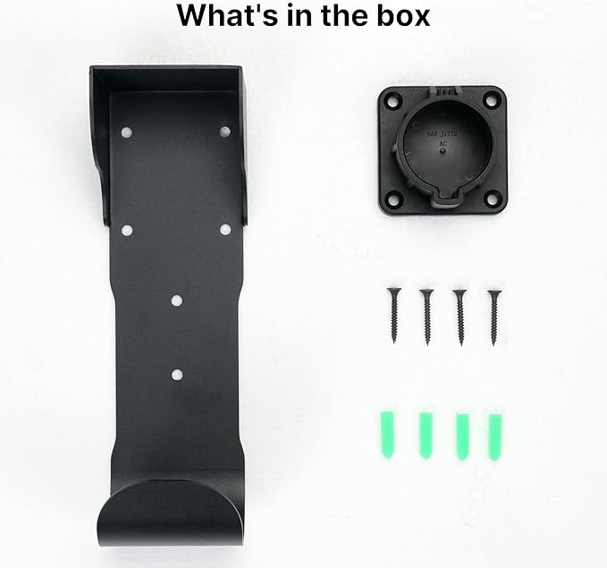 - 【Easy Installation】EV charger holder comes with 1 x J1772 dock and J-hook, 6 x screws. It only takes 5 min to complete the installation. Simply align and drill the holes, insert the anchors, and install using the screws provided.