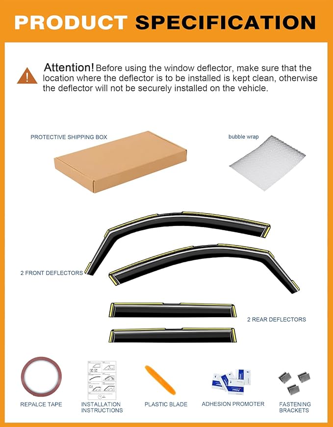 - 【Full-size Side Window Deflectors】This 4-piece set includes passenger, driver side rain guards that create a seamless look that protects you from sun rays, rain drops, and wind while you’re driving with the window down.