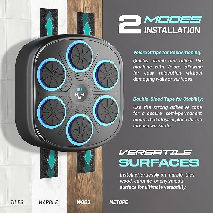 - CUSTOMIZEABLE BOXING AND FITNESS PROGRAMS: Adjustable settings for rhythm training, reaction improvement, and endurance building, suitable for beginners to advanced users.