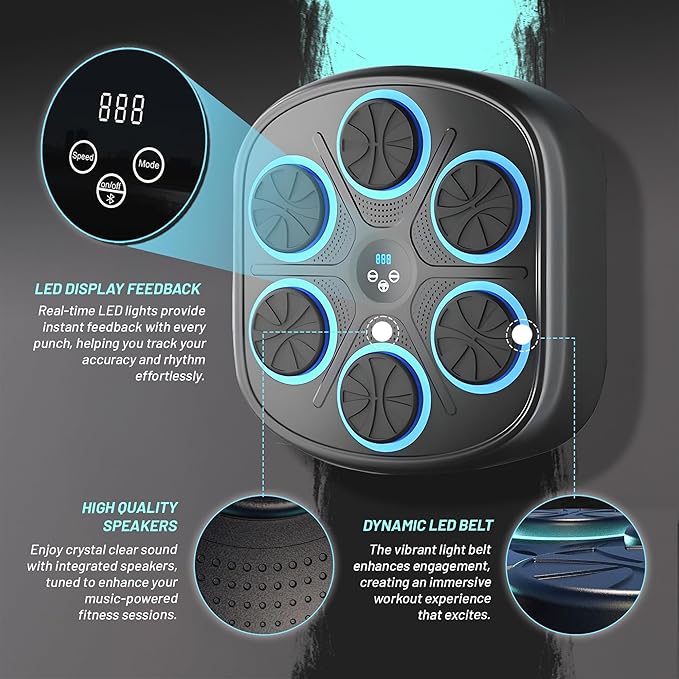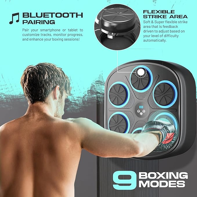 - INTERACTIVE SMART MUSIC BOXING MACHINE: Combines music and fitness for an engaging workout experience, perfect for adults, teens, and kids at all skill levels.