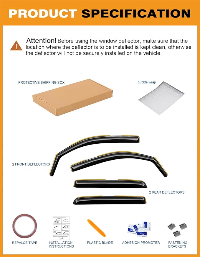 - 【Full-size Side Window Deflectors】This 4-piece set includes passenger, driver that create a seamless look that protects you from sun rays, rain drops, and wind while you’re driving with the window down.