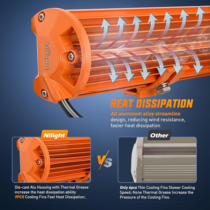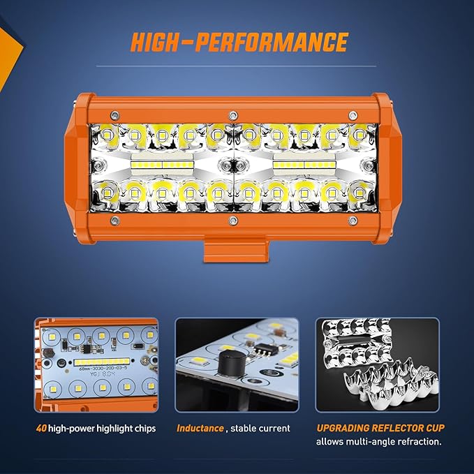 - Bright and Safe: With 40pcs 3W powerful high intensity LED light chips. 60° flood beam and 30° spot beam combo in reflective cups provide a brighter illumination, 6000K bright white light and broader view, increasing safe for your night hunting, night ride or any other night activities